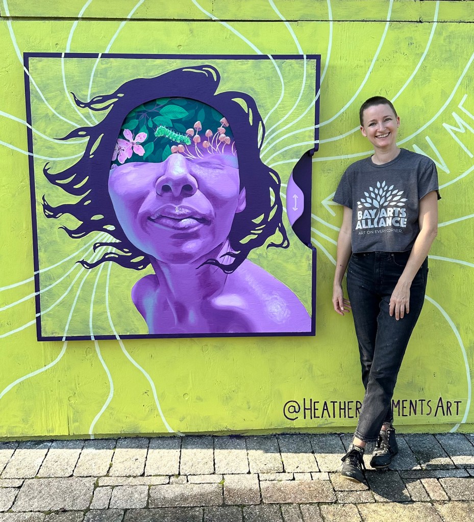 Helene was the second major storm to upend Heather’s life and career. In 2018, while living in Panama City, Florida, Hurricane Michael destroyed her home, forcing a year-long hiatus from creating art. Last year, Heather and her husband relocated to Asheville. This September, Helene spared their home but devastated most of the River Arts District, including 310 Art, the gallery where Heather taught classes and showcased her work, which explores the deep connection between humans and the natural world.